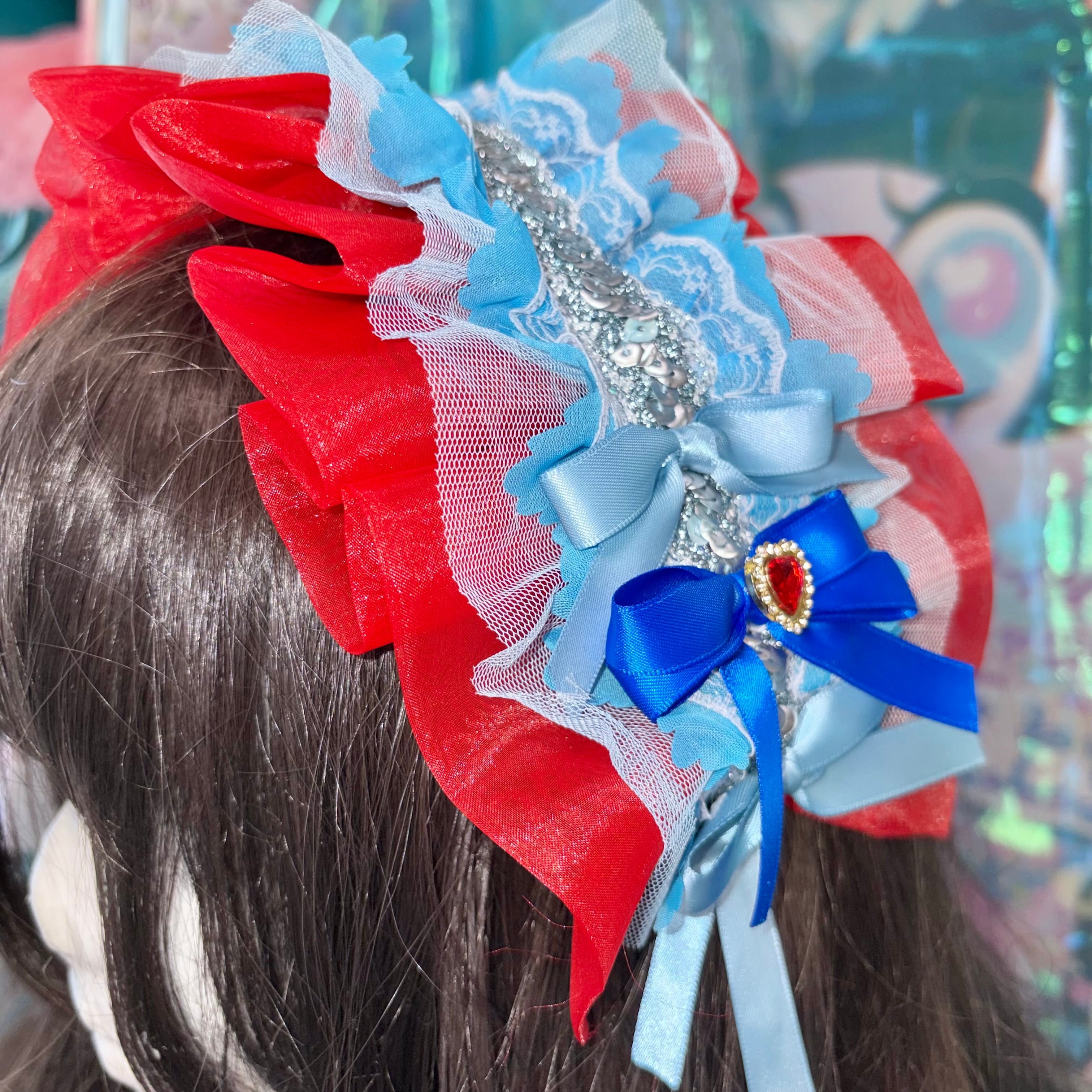 プリンセスのキラキラなティアラを連想させる、オーガンジー、フリル、ハートのカボションなどキラキラ輝く素材を詰め込みました♡