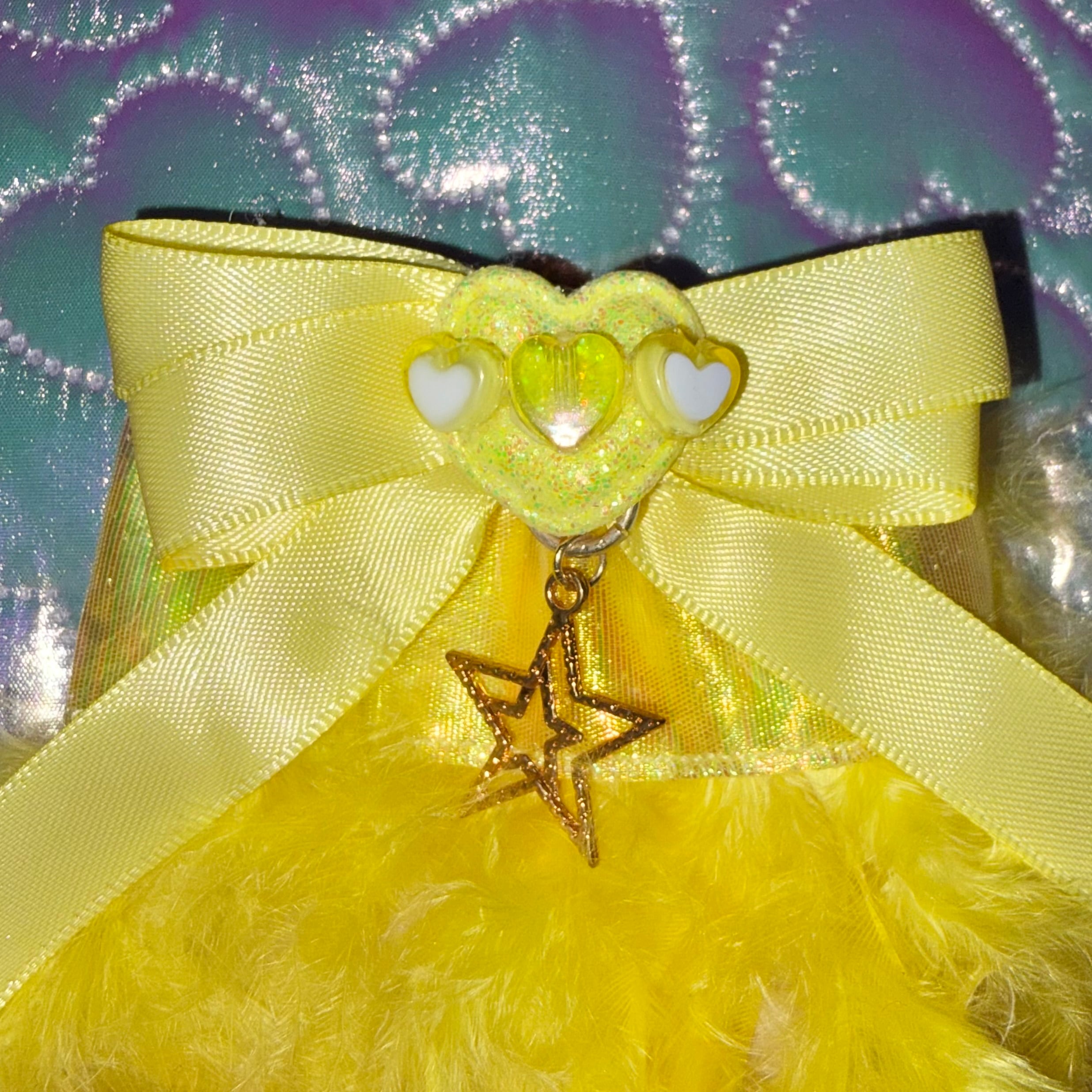 オーロラに輝くリボンと、きらめくハートのモチーフが